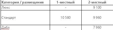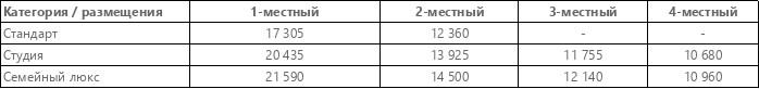 Стоимость указана на человека (ВАЖНО! подселение невозможно):