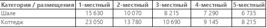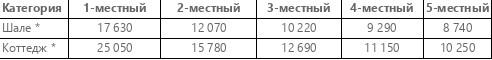 * Возможно рассмотреть размещение в шале - до 6 человек, в коттедже – до 8 человек